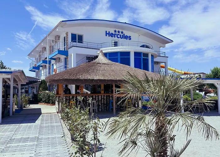 Das Hotel liegt in rund 5 Gehminuten Entfernung von einem privaten Strand. Den Olimp Strand finden Sie in rund 2 km Entfernung von dem 3-Sterne-Hotel. Plaja Jupiter gehört zu den beliebtesten Sehenswürdigkeiten und liegt zudem 5 Gehminuten vom Hercules entfernt. Der Flughafen Mihail Kogalniceanu ist in 70 km Entfernung von der Unterkunft gelegen.